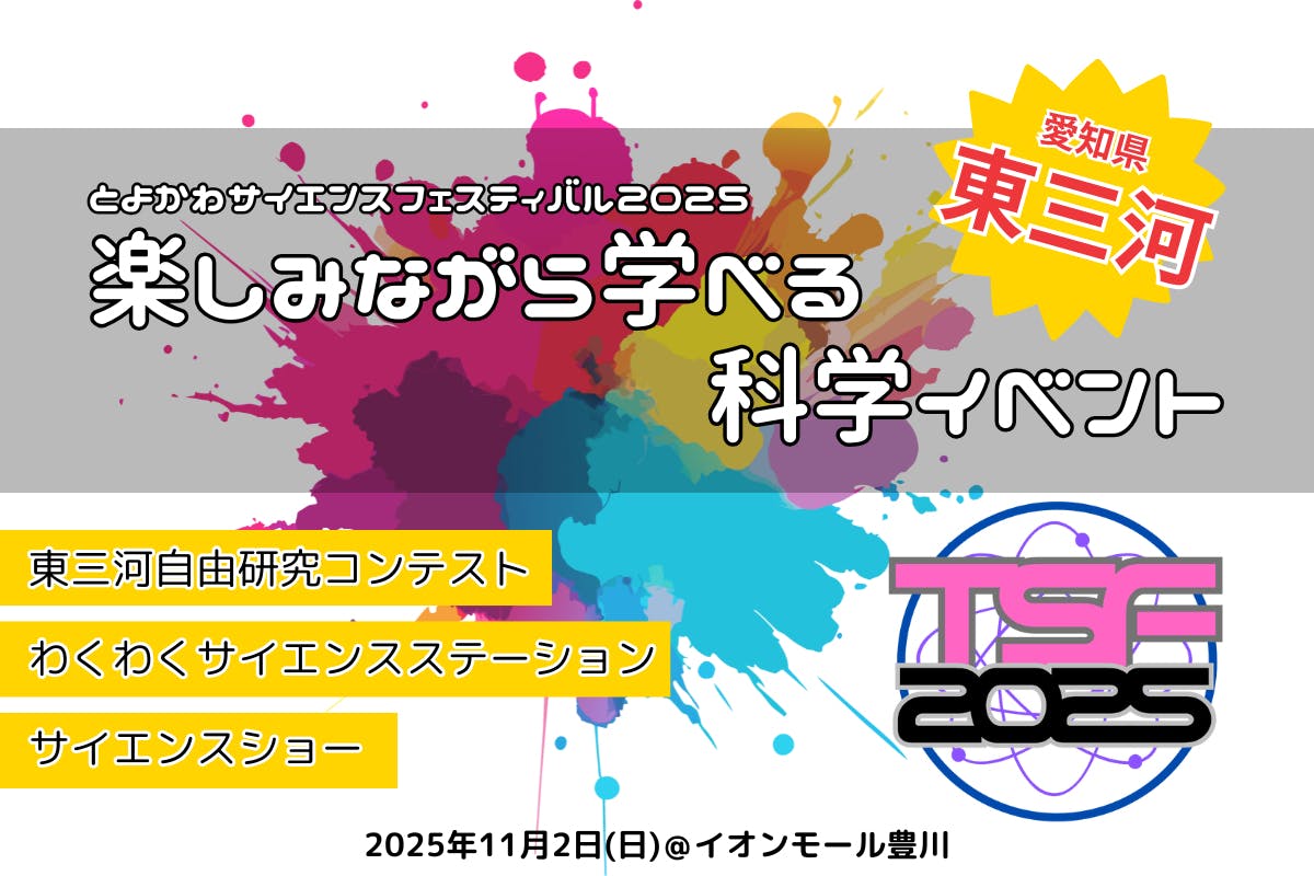 2025年11月2日、愛知県豊川市のイオンモール豊川にて「とよかわサイエンスフェスティバル2025」を開催します!東三河地域の子どもたちが科学に触れ、楽しみなが...