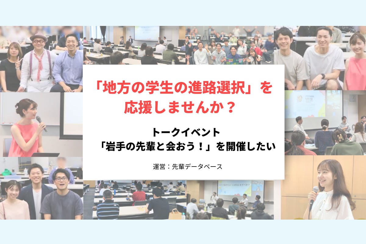 2025年6月8日(日)、岩手県盛岡市で開催する学生向けキャリアイベント「岩手の先輩と会おう!」の運営費を募るクラウドファンディングです。地方で育つ学生が将来に...
