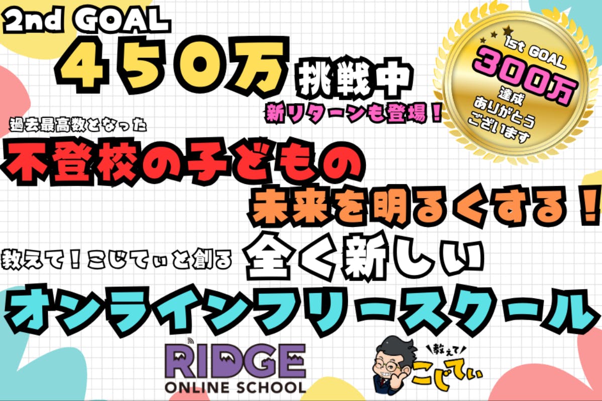 2nd GOAL挑戦中!発達障害や様々な事情で不登校になり、学びたいけど学べない子供達のためのオンラインフリースクールを開校したい!家でなら学べる子供達の未来を...