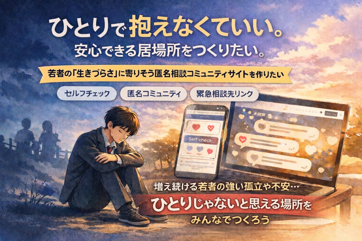若者が「ひとりで抱え込まなくていい」と感じられる、匿名・安心のWebサイトを必ず立ち上げます。