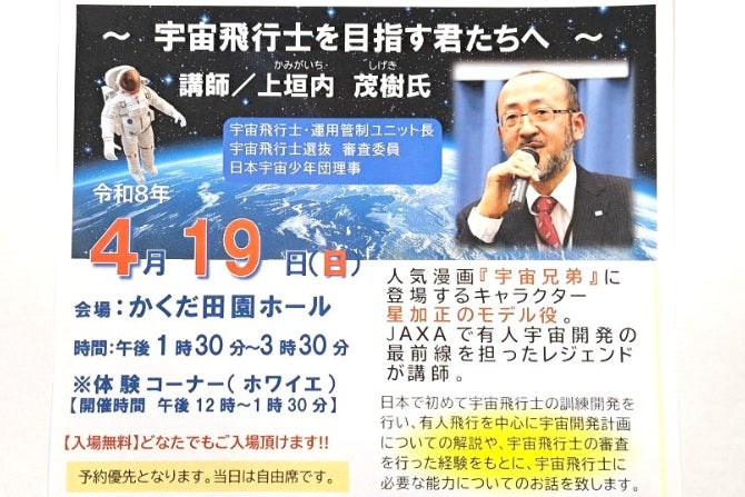 「宇宙飛行士を目指す君たちへ」講演会の実現!! ワクワクしたい子供達・大人達へ、宇宙のお話を届けたい!! 日時/令和8年4月19日(日)午後1時30分~【...