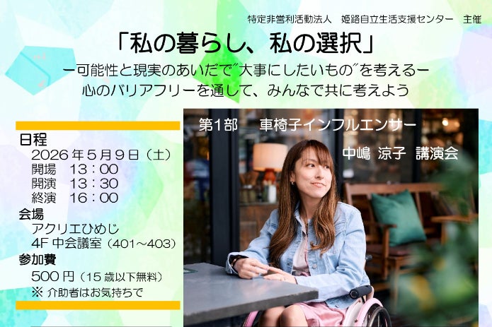 2026年5月9日(土)13時より、アクリエひめじ4F中会議室にて、「私の暮らし、私の選択」ー可能性と現実のあいだで"大事にしたいもの"を考えるーをテーマに、障...