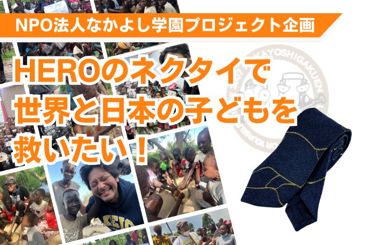 代表中村雄一を中心に世界中の子どもたち(紛争地域、途上国)にて教育支援や食料支援を行っているNPO法人なかよし学園プロジェクトが西陣織で織りあげたHEROのネク...