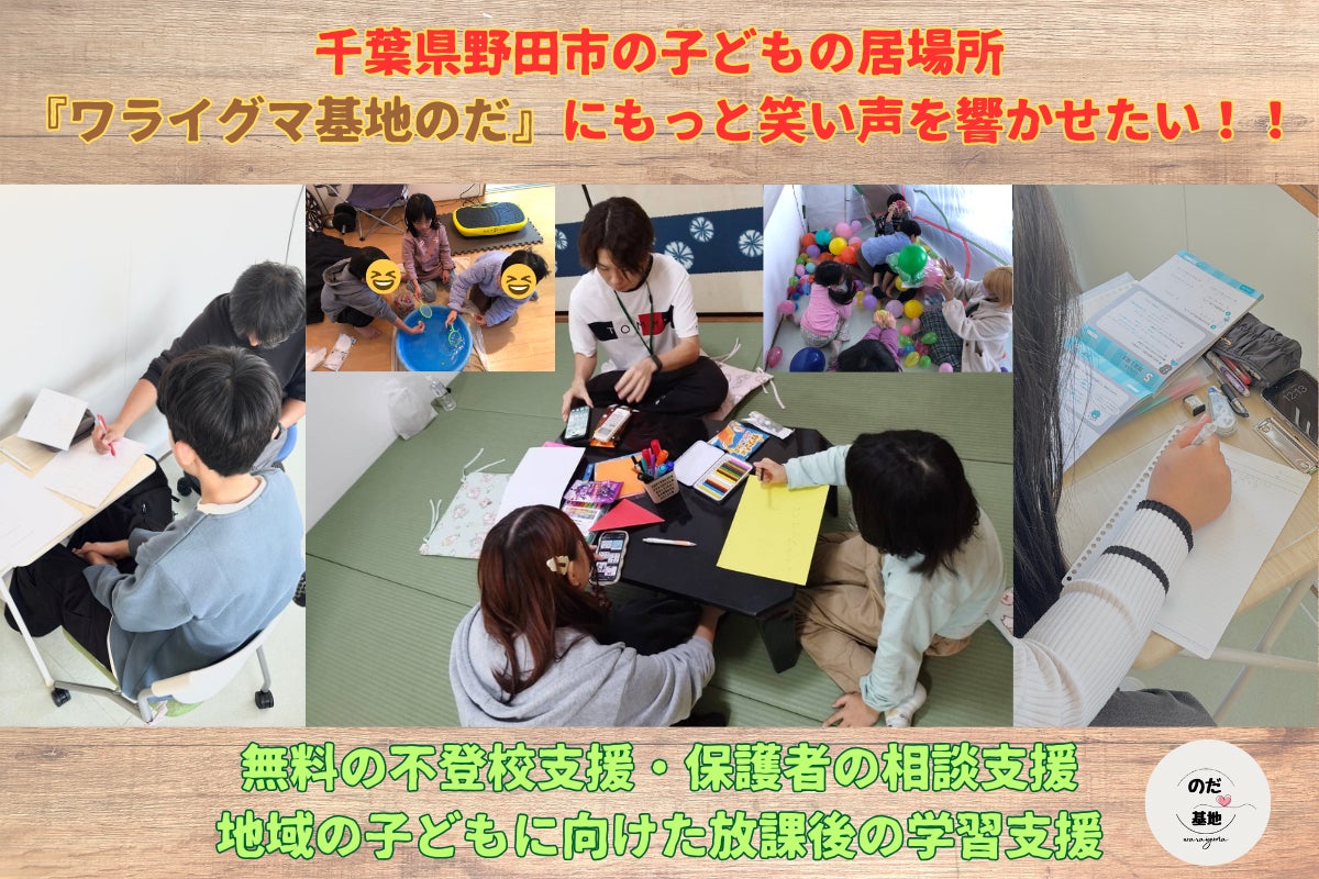 千葉県野田市にある「子どもの居場所」を支えたい!毎週月曜日(祝日除く)に開所。令和7年2月12日現在で、合計16開所&利用者105名♪無償で場所を借りているが、...