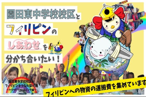 昨年、中学校で集めたランドセルをフィリピンに届ける活動をしました。物資を届けてくださるNPO法人JIYUの方の渡航費や運搬費が自腹だった事に衝撃を受け、園田東中...