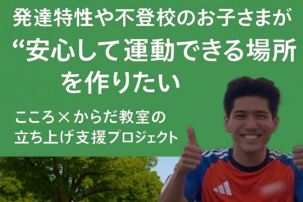 発達障害のある子どもたちが安心して運動できる“こころ×からだ教室”を広げるための支援を募ります。施設への無料スポーツ支援や、経済的に参加できない子への無償枠の拡...