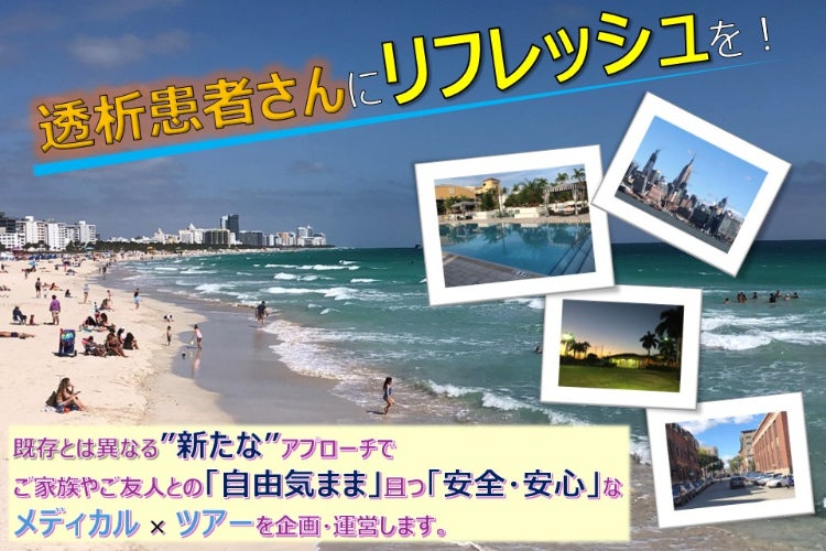 難病患者のQOL向上を企図、まずは透析患者が身近の方々と旅行することで人生の幸福度を高めてもらいたい。人工透析は専門施設での治療を週3回各半日受ける必要がある。...
