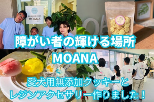 MOANA(モアナ)は大阪府茨木市にある就労継続支援B型事業所です。私たちは、無添加・グルテンフリー・完全自然素材の愛犬用わんだふるクッキーと綺麗なレジンアクセ...