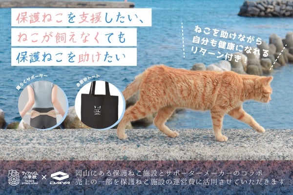 保護ねこ施設ティアハイム小学校が、岡山の医療用品メーカーのダイヤ工業さんとコラボ! 正しい姿勢、美しい姿勢へとサポートする骨盤サポートバンドをリターンに、保護ね...