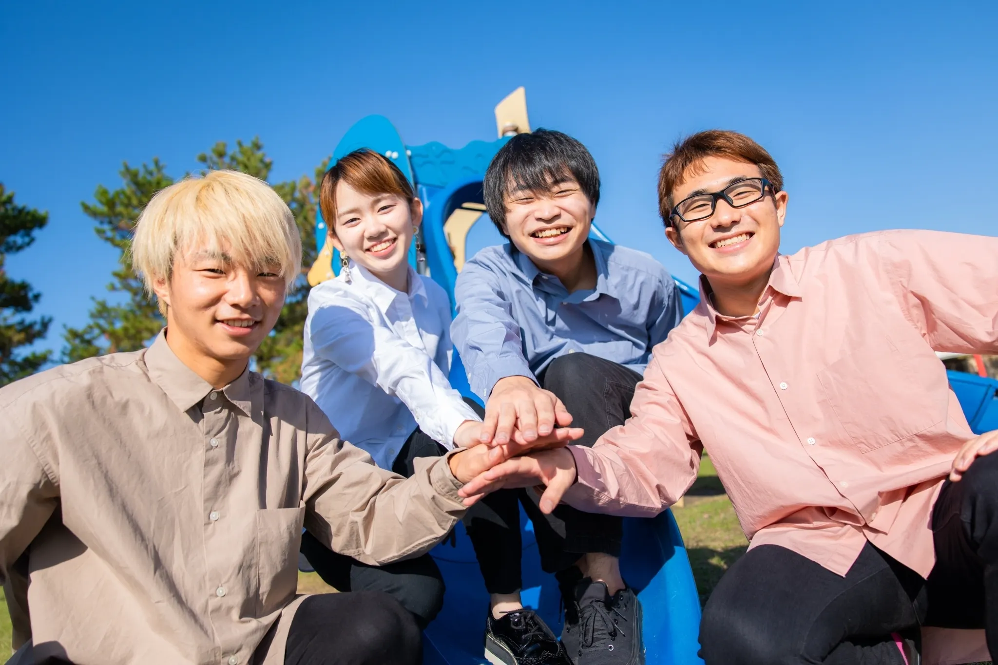 初めまして。障がい児童福祉施設向け業務サポートアプリ「リンク」です。私たちは、年齢も大学も見た目もバラバラなギャップが溢れる宮崎の大学生4人です。 実は、藤島と栗坂は放課後等デイサービスと宮崎市独自のサービスの日中一時支援でアルバイトをしています。その中で、職員が連絡帳や書類業務に多くの時間を費やし子ども達と接する時間が減っていることに疑問を抱きました。また、今西は脳梗塞の影響で左半身麻痺になってしまった父親の介護を自宅で行っている当事者です。宮下は高校からプログラミングを学んでおり、Web制作の技術を得意としています。 そんな、奇跡的に集まった4人でこの問題を解決するべく、立ち上がりました。