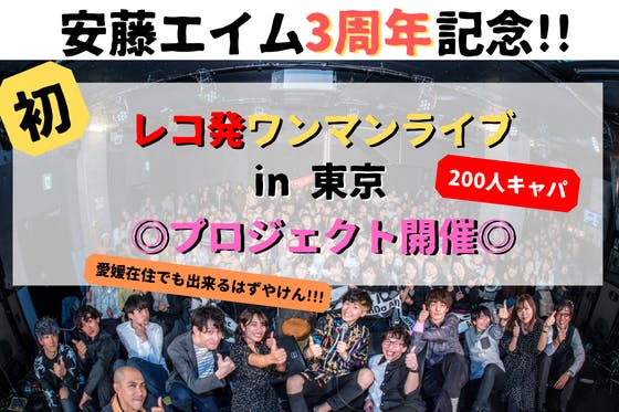 安藤エイム3周年を記念して東京にてレコ発ワンマンライブを開催したいです!集まった大切な資金は、ライブの会場費や機材費、またイベント運営費用、リターンの制作費、ア...