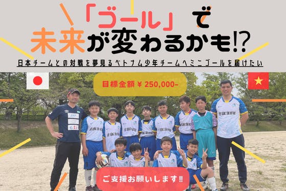 愛知県豊明市近辺在日在留のベトナム人コミュニティの小学生サッカーチーム「FC豊明ベトナム」への活動支援のお願いとなります。地域特性として外国人労働者が増えており...