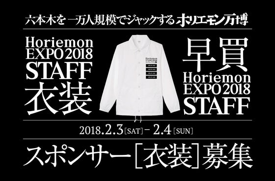 ホリエモン万博にてスタッフが着用するナイロンジャケットのスポンサーを募集しています!!また早めに着用して集客に繋げたいと思っている「有志」に向けたクラウドファン...