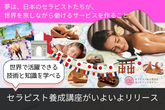 世界で活躍できる知識とスキルを学べるセラピスト養成講座がいよいよスタート。夢は、日本のセラピストたちが、世界を旅しながら働けるサービスを作ること。その第一歩とし...