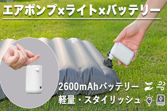 エアポンプ×ライト×バッテリー=空気入れ、火起こし機、荷物圧縮等マルチに大活躍!2600mAhの大容量バッテリー搭載!長時間駆動も緊急時のスマホの充電も可能!わ...