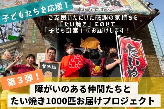 障がいのあるスタッフが「たい焼き」を焼いてお届けするプロジェクト第3弾。 皆さまからのご支援が、仕事を通じてスタッフが成長して社会で活躍することと、 「子ど...