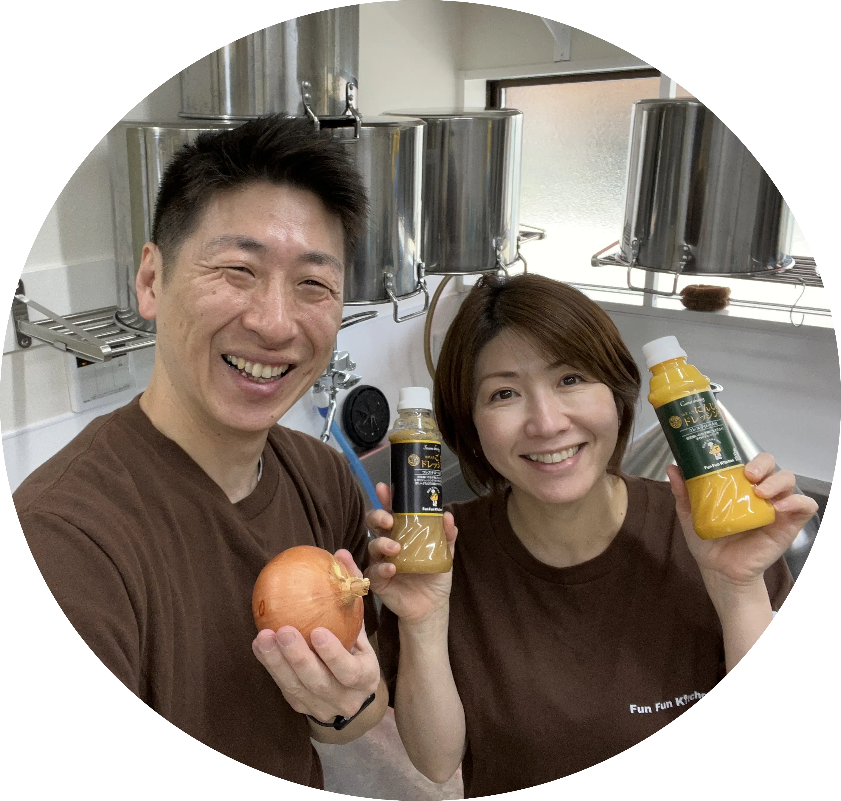 Fun Fun Kitchenの若林尚美と夫の泰孝です。 私たちは夫婦で民間の学童保育施設を運営しています。 在籍生徒数は約100名。年長さん〜中学生までが通っています。 今年で11年目になりますが、コロナ禍が大打撃を受け、会社は瀕死状態。 コロナ禍以降、子どもたちの居場所を守るため、必死にスクールを維持してきました。 この場所を守るために何でもしてきました。 それでもまだまだコロナ以前のようには戻らず、苦しい日々は続いてます。 明日潰れてもおかしくない今の状況を救う希望の光が、私の母から受け継いだ「魔法のドレッシング」です。 ぜひ、最後までこのページを見ていただけると嬉しいです。