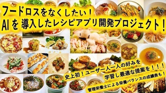 今手元にある食材で作れるレシピをAIがあなたの好みに応じて提案してくれるアプリ開発を行います!作ったレシピから栄養バランスを踏まえた管理栄養士による成績表も提供...