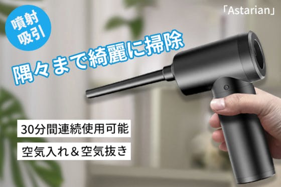 50000rpmの噴射力でクーラーから車内まで綺麗に!「Astarian」【風力2段階/6000mAh大容量/8000Paの吸引力/7種類のノズル付属】