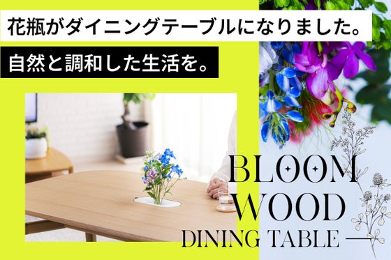 感性を育てる家具ブランド「BLOOM WOOD」です。ダイニングテーブルと取り外し可能な花瓶が一体になっています。食と花を組み合わし、自然と調和した生活を過ごす...