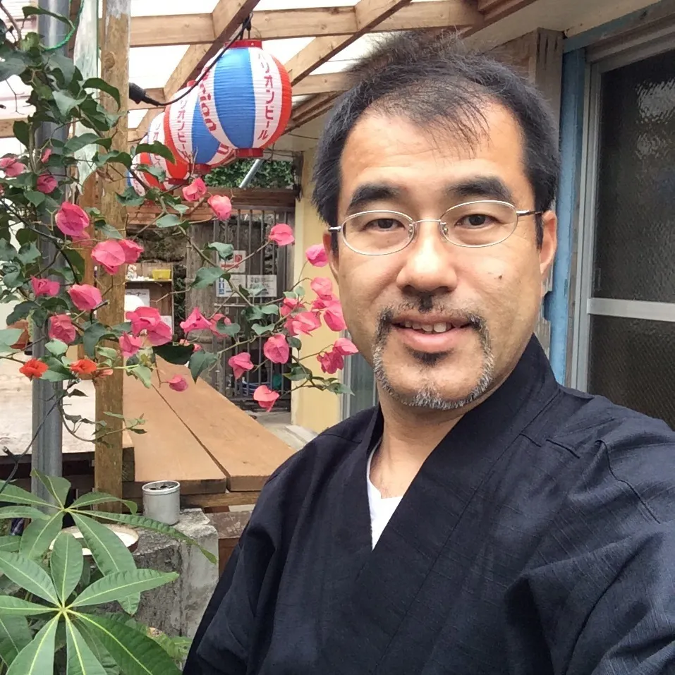 学生時代の4年間を沖縄で過ごし、その後就職で内地で約10数年の生活を送る。 2003年、脱サラし学生時代に過ごした沖縄で民宿業を始める。おかげさまで15年、沖縄市コザに根ざした民宿としてそれなりに頑張ってます。 沖縄のエイサー、三線好き。エイサー検定特級合格。コザまちまーいガイドとしても年間約200名の観光まち歩き案内をやっています。