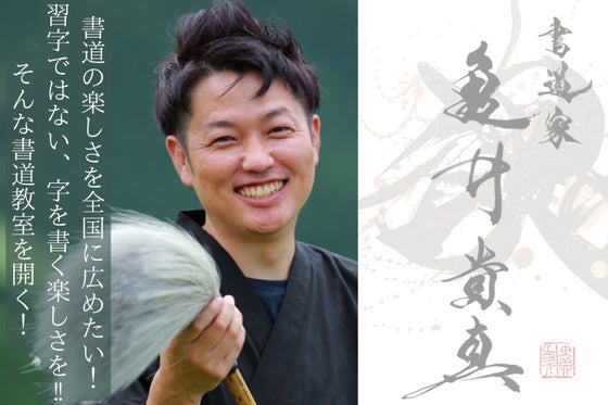 書道は自由にのびのびと書いていい、もっと楽しく身近にあるものだと知ってほしい、との想いから、書道家 亀井貴真が「書をエンタメに!」をコンセプトにオンライン書道教...