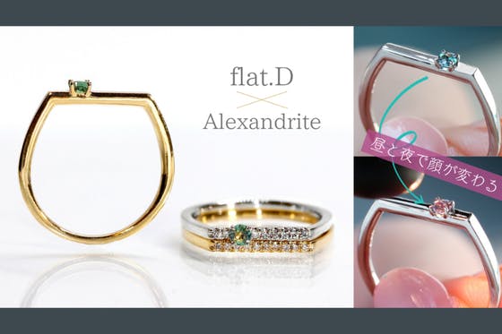 室内と外で顔が違う!?希少なアレキサンドライトの石を使用!ぷっくり×フラットのクールかわいいデザインリング 大人気シリーズ第三弾が登場素材はこだわりの「K18Y...