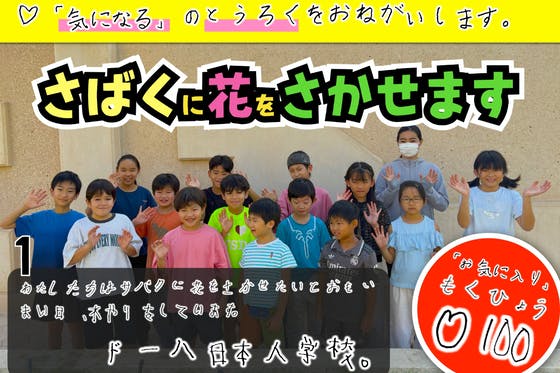 砂漠の国カタールの学校、ドーハ日本人学校のみんなで、校内の花だんを花でいっぱいにし、心安らぐ学びの空間をつくろうと思っています。2026年頃までに、花だんにスプ...