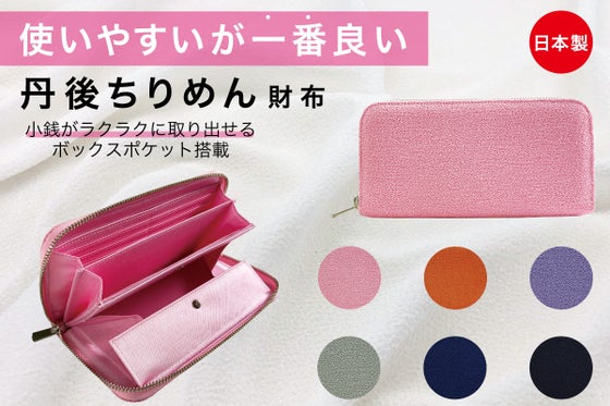 京都府丹後地方で300年の歴史を誇る織物【丹後ちりめん】と、兵庫県豊岡市で奈良時代から続くカバンづくりの技術を組み合わせた、長財布はボックスコインタイプの小銭入...