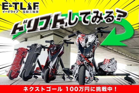大人も子どもも楽しめる!ドリフトの快感がたまらない電動三輪車「E-TLIF」。乗ったら自然と笑顔になる乗りものです。ぜひこの面白さをたくさんの方に体験していただ...