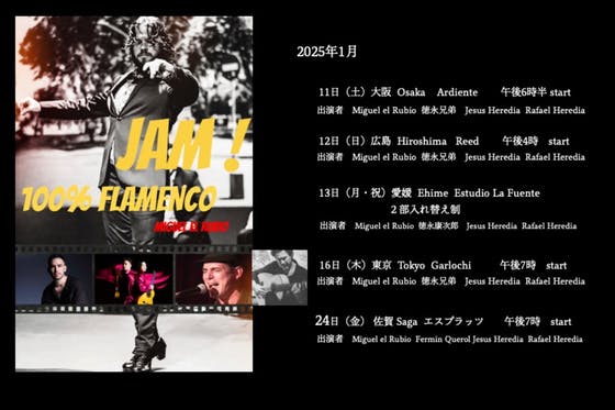 2025年1月大阪を皮切りに広島、愛媛、東京、佐賀とフラメンコライブツアーを計画しています。スペイン、日本、アメリカ在住の若手アーティストを中心のグループで、フ...