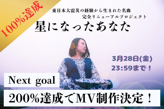 100%達成!ネクストゴール200%達成して、東日本大震災の経験からうまれた曲「星になったあなた」のミュージックビデオをつくりたい!