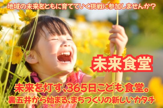 五井駅から徒歩3分の飲食店舗を活用し、全国でも例の少ない365日運営のこども食堂「未来食堂」を創設するプロジェクトです。地域の子どもたちに、無償で食事を提供し、...