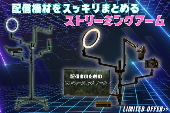 配信をするすべての方へ。配信機材がスッキリ収納!4in1のマルチスタンド。モニター/カメラ(スマホ)/マイク/LED照明を「1つのスタンド」に集約!スッキリデス...