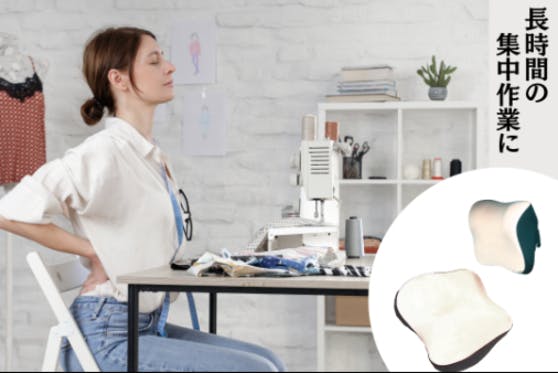 長時間のデスク作業に!腰&お尻ラクラクサポートクッション座り姿勢が長引くと、腰や肩がツライ体がだるくて姿勢をよく変える長く座り作業していると、腰が固まったような...