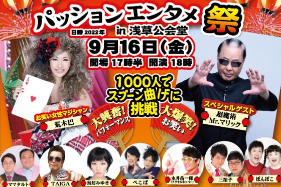 9月16日(金)に浅草公会堂でパフォーマンスとお笑いのコラボレーション公演を開催します。 コロナ禍でも体験型のエンターテイメントを子供達に楽しんで欲しいと参加型...