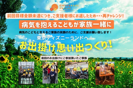 前回目標金額未達だったため、再チャレンジします! 生命を脅かす病気(LTC)と闘っているこどもとご家族に、看護師や介護スタッフが同行・福祉車両を利用して安全安心...