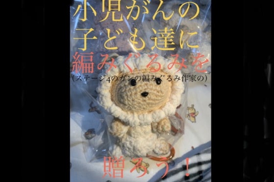 私はステージ4の大腸がんの「編みぐるみ作家」です。この時も辛い治療や手術、入院の孤独に立ち向かっている”小児がんの子ども達”や難病の子どもたち"に、私の編みぐる...