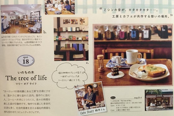 ミシンの音のするカフェ「いのちの木 The tree of life」 ドラマや映画のロケ地になっている街並みが魅力の港北ニュータウン(横浜市都筑区)の仲町台駅から徒歩3分、ミモザ通り/遊歩道沿いにあります。NPO法人五つのパンが運営するコミュニティカフェです。
