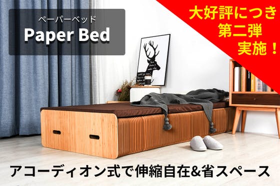 好評につきPaper Bed 第二弾プロジェクト実施!!収納時の体積は展開時のわずか1/10、圧倒的な省スペース性。展開楽々。1.引っ張り出す 2.マットレスを...