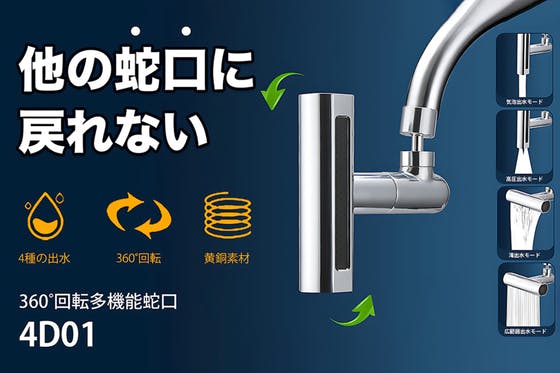 1,360度回転させるだけ。4種類の出水モードに切り替え可能! 2,汎用インターフェース。あらゆる蛇口へ簡単に取付可能! 3,高品質の黄銅素材。防腐防サビ効果を実現!
