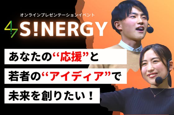 S!NERGY(シナジー)は、若者が社会をより良くするためのアイディアを発信するプレゼンテーション・イベント。 若者の既存のルールに捉われない、自由な発想を社会...