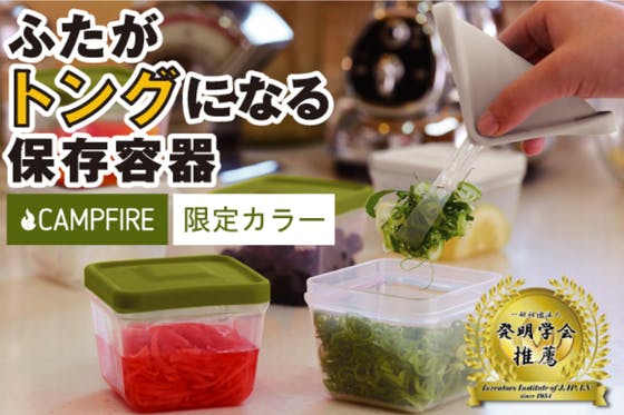 「ふたがトングになる保存容器」にCAMPFIRE限定カラーが登場。その名の通り、食品用保存容器とトングが一体となっていて、蓋を外せばそのまま中のものを掴めるよう...