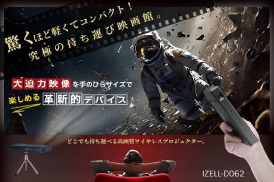 どこでも持ち運べる高画質ワイヤレスプロジェクター。大迫力映像を手のひらサイズで楽しめる革新的デバイス!IZELL-D062。