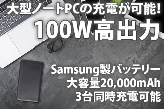 MacBookPro15インチが充電可能!100W高出力モバイルバッテリー。外出先で充電器不要!Samsung製高品質バッテリーの大容量20,000mAh!Ma...