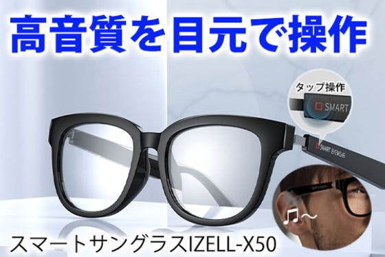 ・音楽再生、通話、音声アシストを耳元に集中させたスマートサングラス・直感で目元をタップし必要な情報をIZELL-X50を通して収集・耳をふさがないため周りの音を...