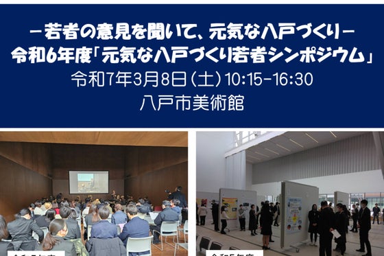 若者の地域への関心を高め、地域づくりに若者の声を生かす、令和6年度「元気な八戸づくり若者シンポジウム」(令和7年3月8日(土)、八戸市美術館)を開催します。地域...