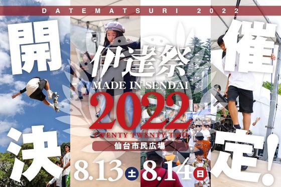 コロナで休止していた「伊達祭-MADE IN SENDAI-」が今年復活!8月13日(土)14(日)に第8回目となる開催が決定。ダンスやDJ、スケボー、BMXと...