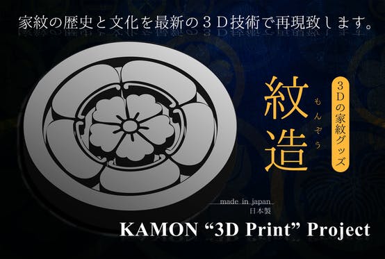 家紋は日本の歴史と文化の象徴の一部であるが、現在は自身の家紋を知っている人は20%と低い。私達は家紋の文化を未来へと繋げていくために、1枚の写真や画像から立体化...