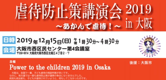 「Power to the Children in Osaka」は12/15、子ども虐待防止策に関するイベントを大阪で開催します。 日時:2019年12月...